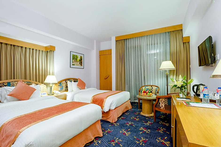 Deluxe Twin is 344 square feet and includes 2 single beds 80-130 width plus desk, cable tv, hairdryer, and ironing set and is Wheelchair-accessible.